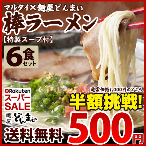 楽天お買い物マラソン特価!ノンフライ・ノンスチーム製法のストレート麺棒ラーメン。オリジナル特製スープ付6食セット。